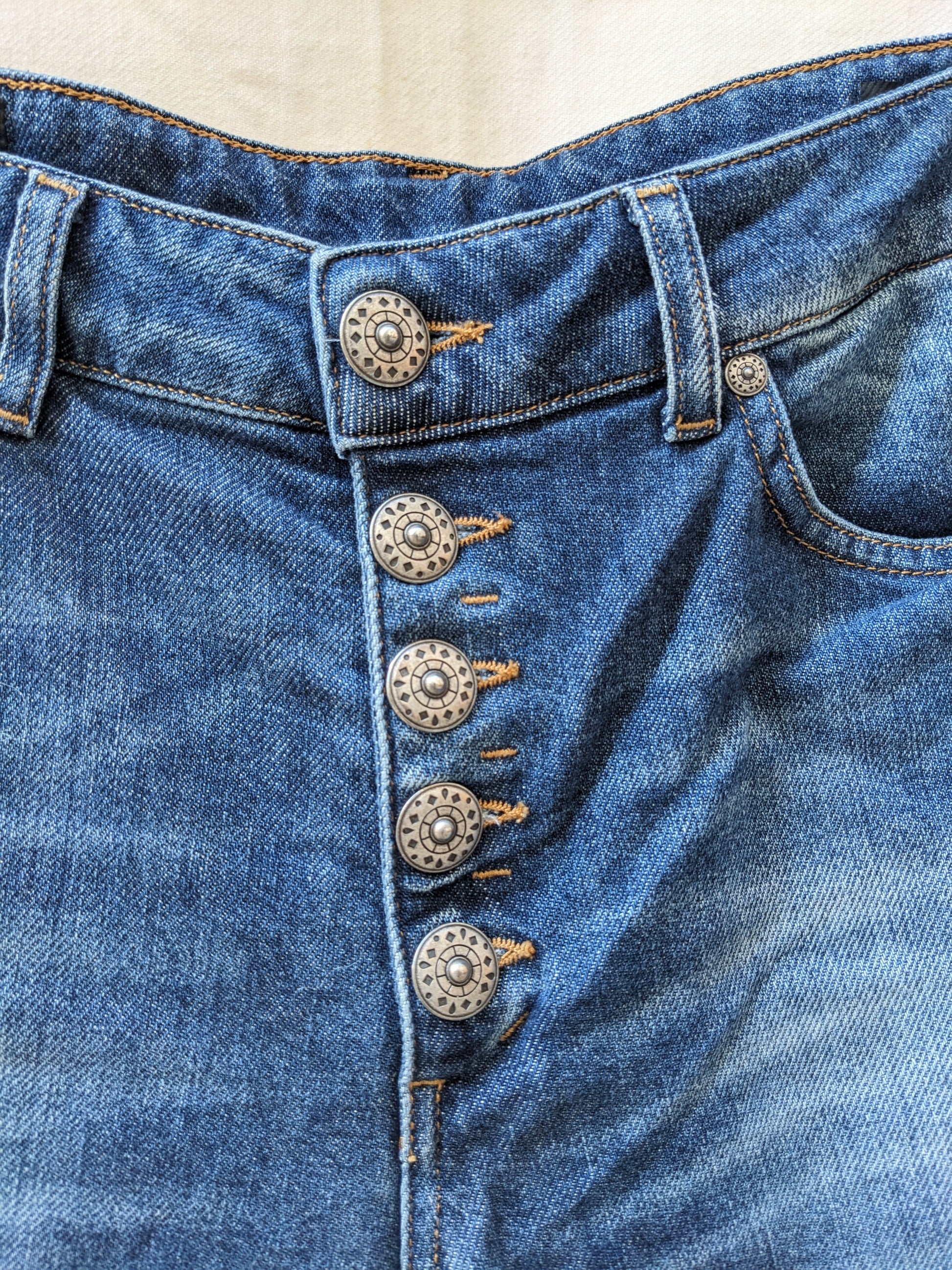 Bleu. Noté taille 30 mais grand ( vérifier mesures ).